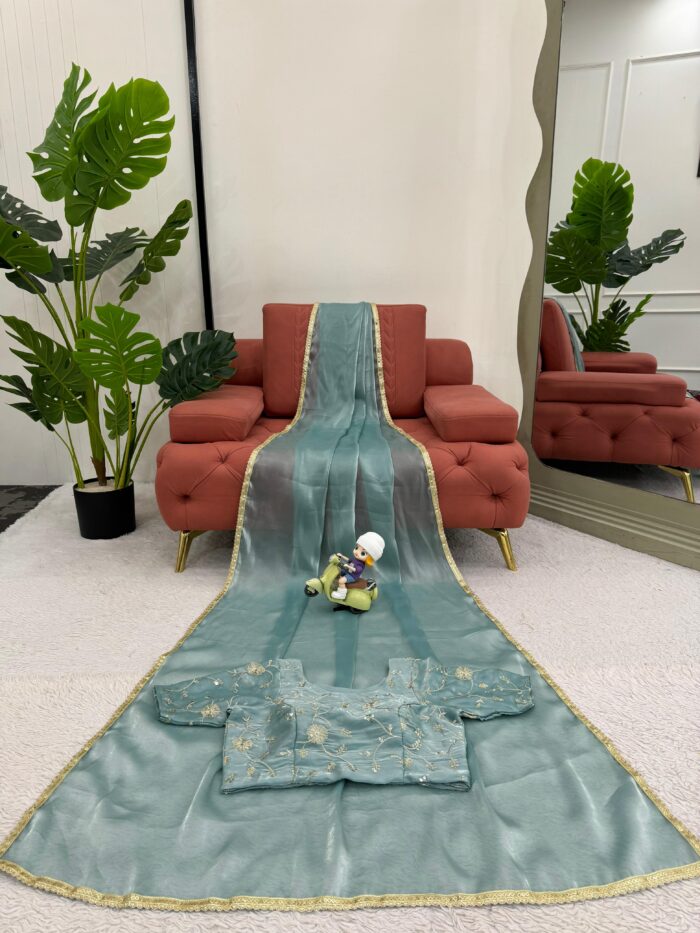 Looking for someone for this same beautiful designer saree in Zimmy Chu fabric with fancy sequins work lace and also Zimmy Chu fabric with thread & sequence work.