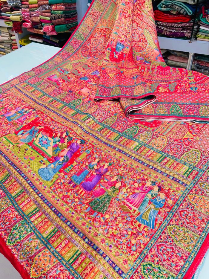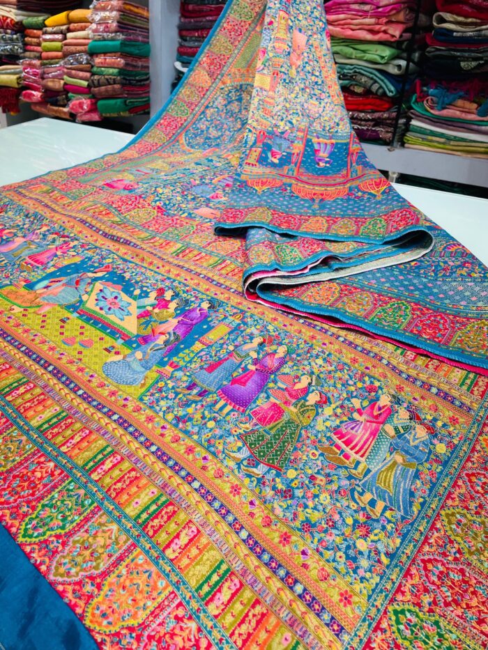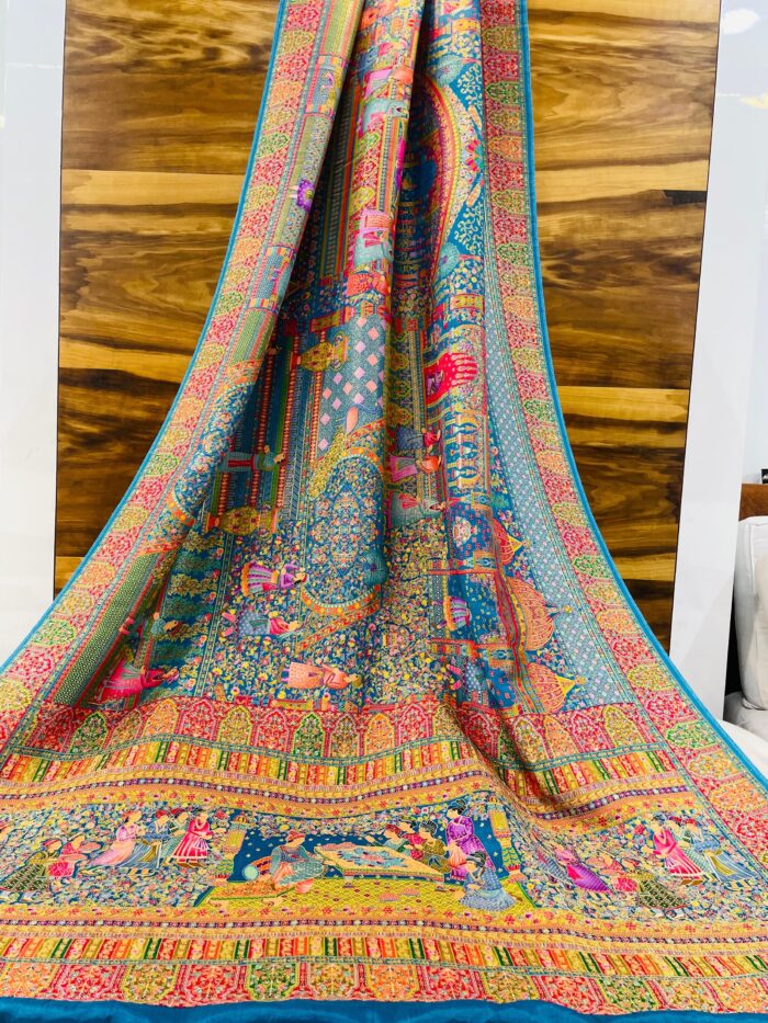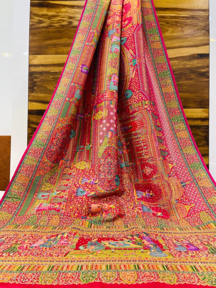 Pure viscos silk position pashmina saree with Pure Jari weaving work with blouse piece
