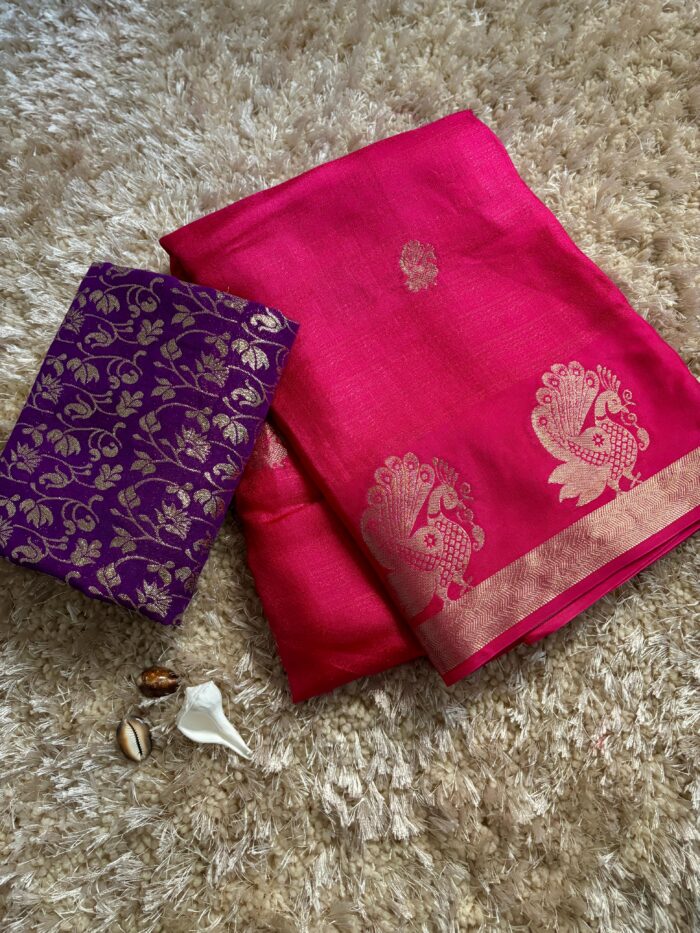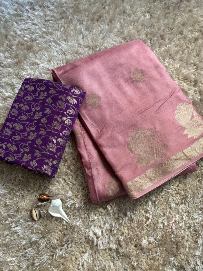 Pure soft Viscose Khadi silk fabric with jacquard motif figure design all over with viscose gold zari blouse