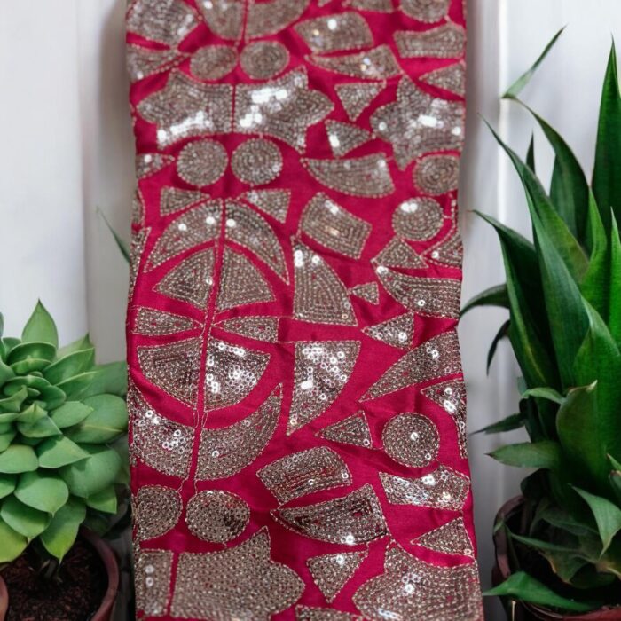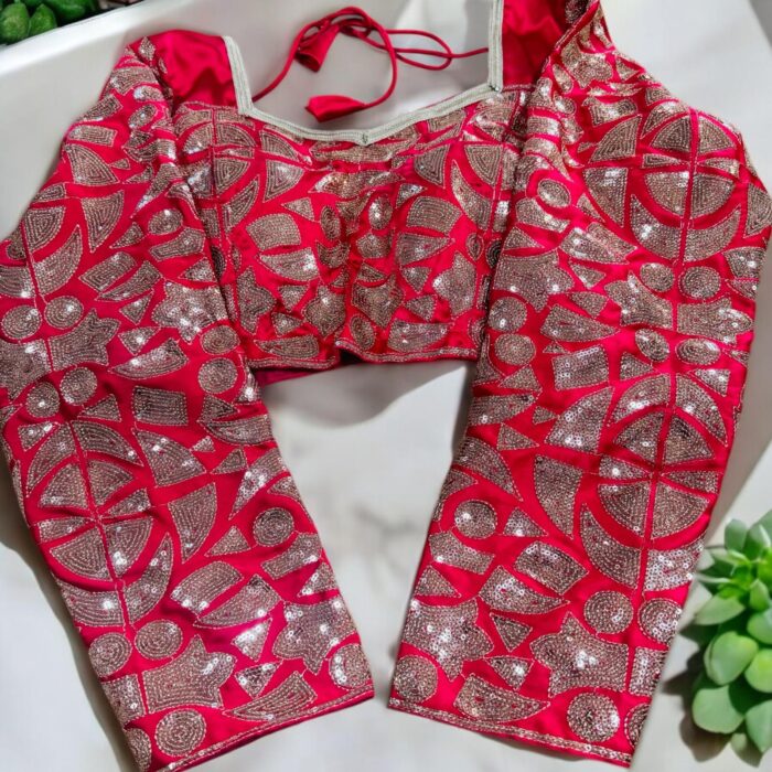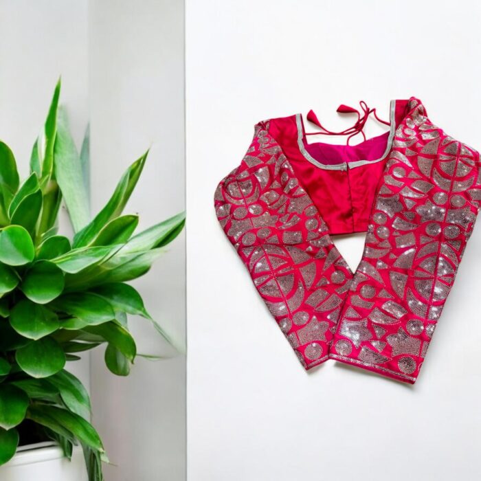 Pink Long Sleeve Blouse With Dull Gold Embellishment