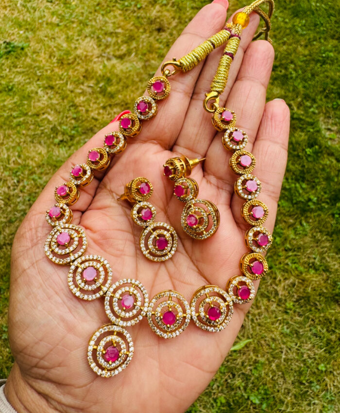 Pink Stone Necklace Set