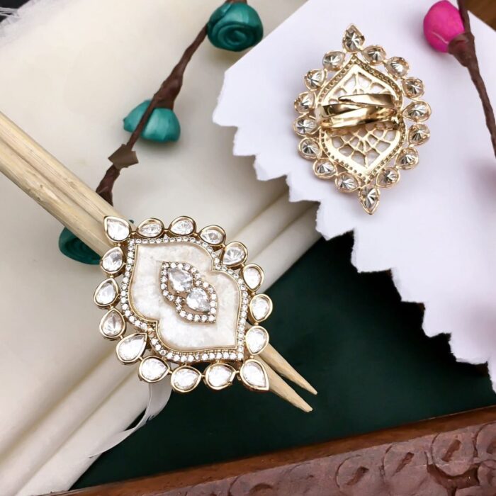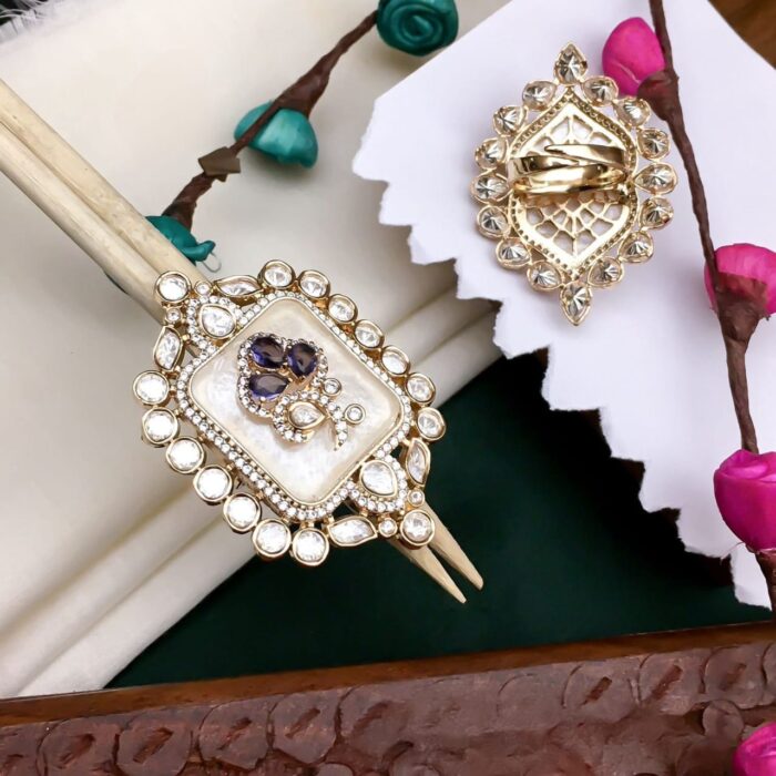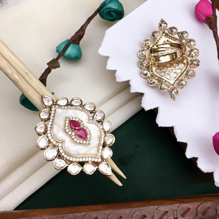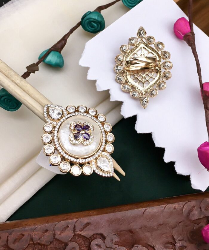 These premium-quality Kundan rings are characterized by their intricate craftsmanship, rich use of gold, and flawless setting of stones
