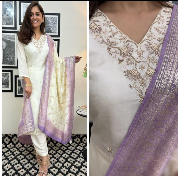 With banarasi jacquard dupatta with Sequence, coding work on neck and bottom
