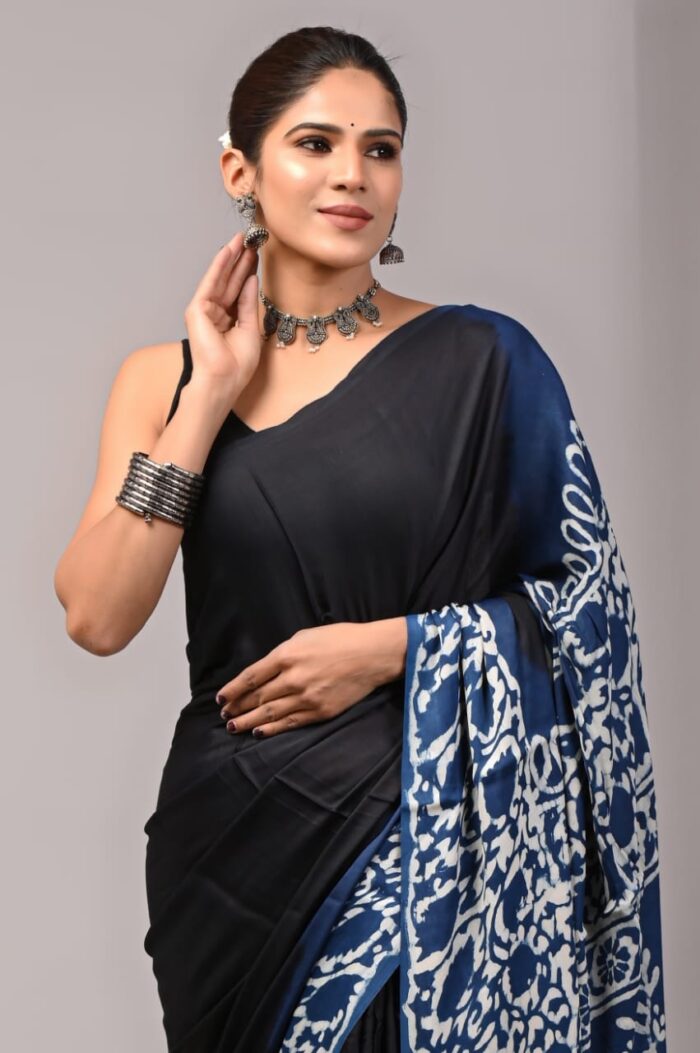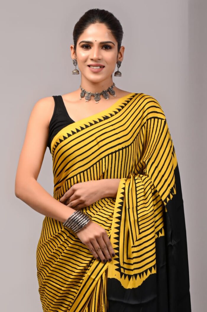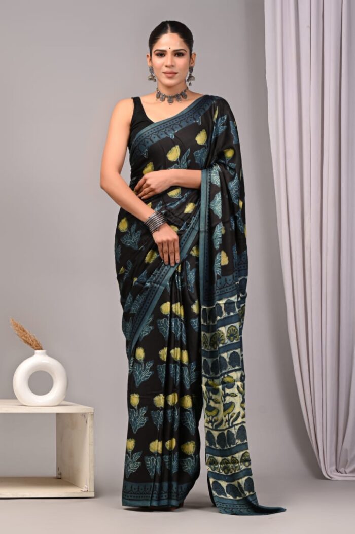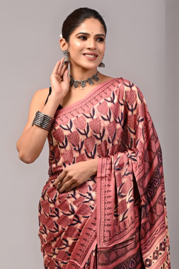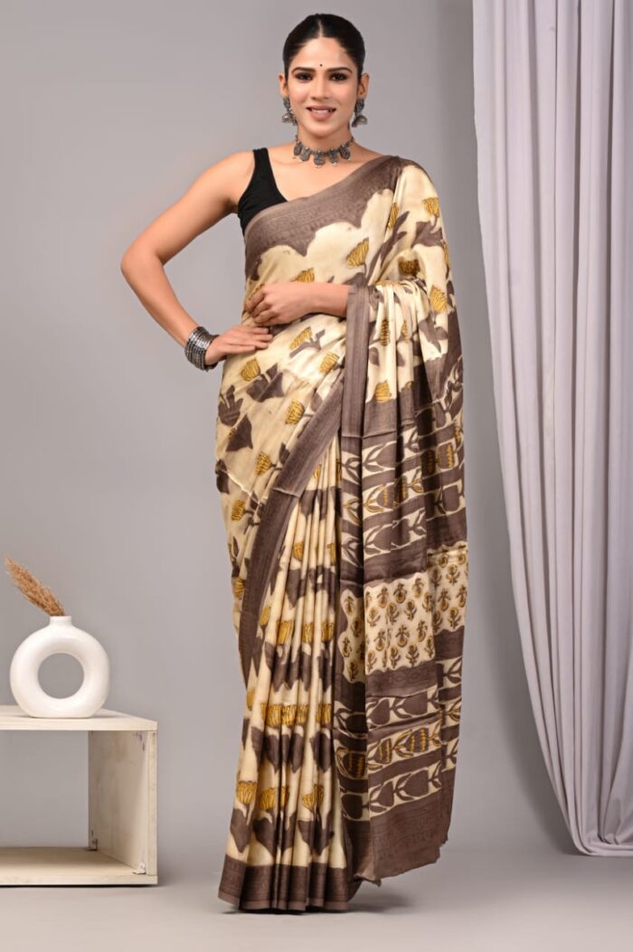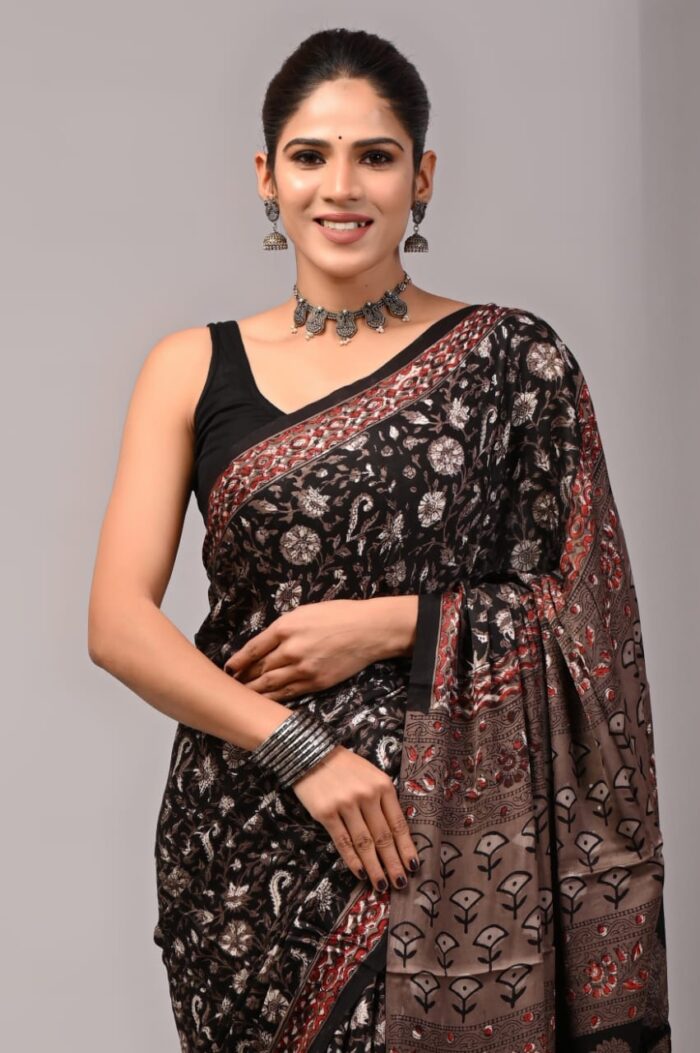 Natural Dye Vegetable hand block print Ajarkh Vanaspati PURE MODAL SILK SAREE