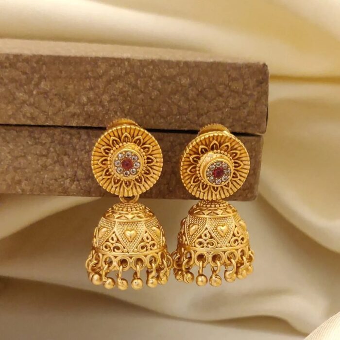 Rajwadi medium sized antique gold jumkas