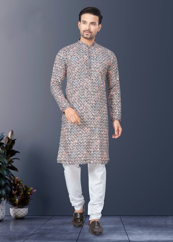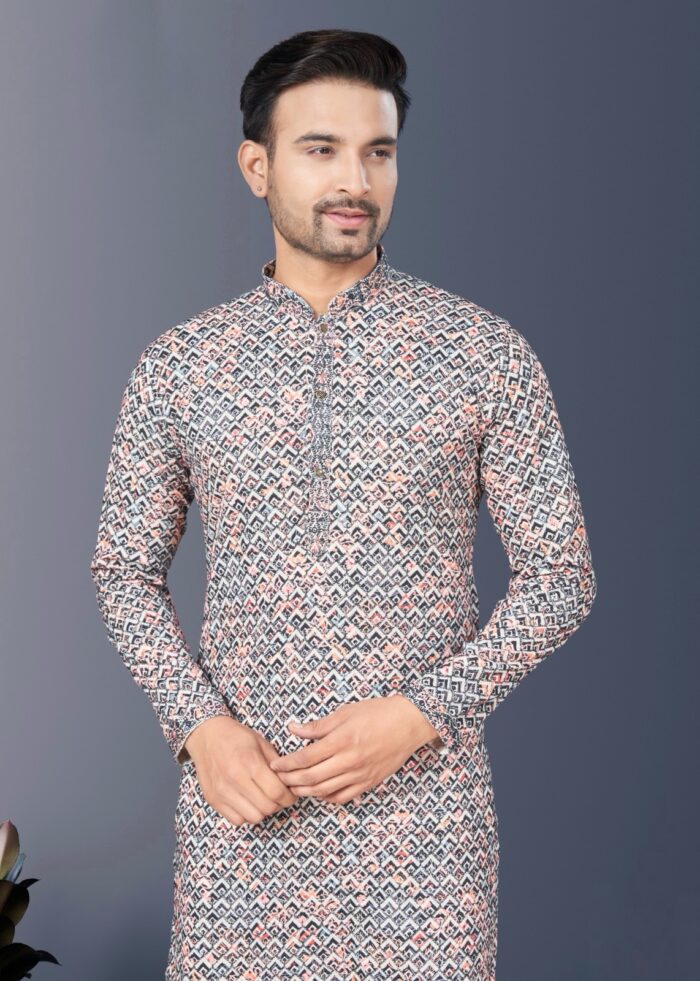 The luxurious silk fabric offers a rich sheen and smooth texture, while intricate embroidery enhances the royal appeal. With its classic mandarin collar and tailored fit, this sherwani ensures you make a bold, sophisticated statement on any special occasion. Paired with traditional churidar or trousers for a complete, regal look.