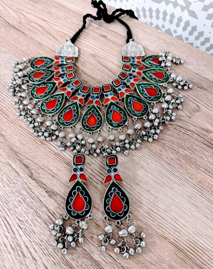 Red and Green Oxidised Necklace Set