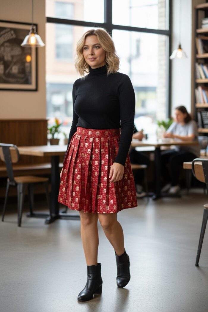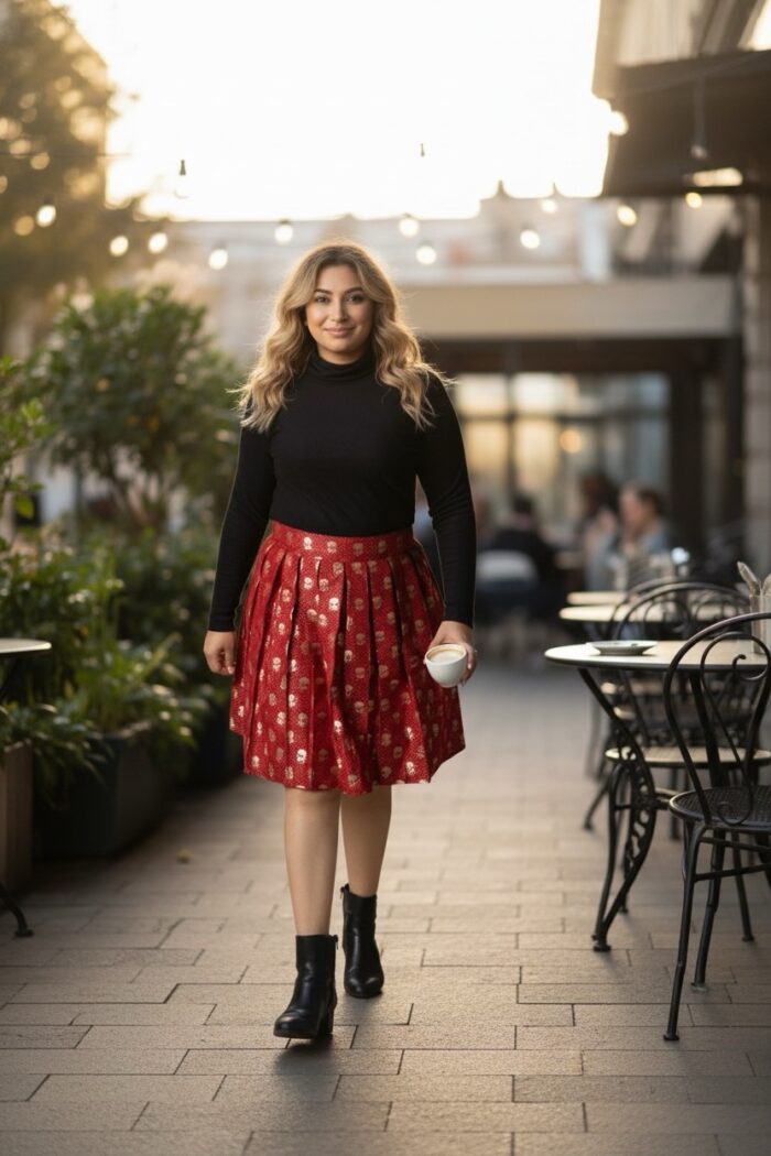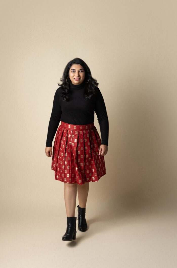 Red Banarasi skater skirt