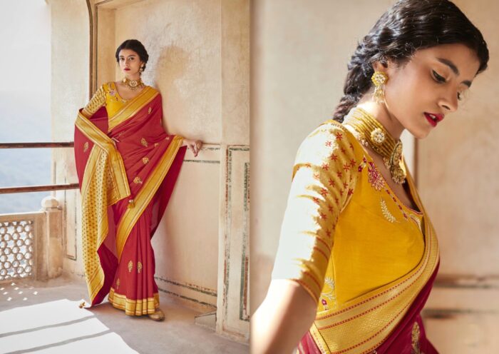 These designer silk sarees feature exquisite embroidery that adds a touch of luxury and elegance to traditional attire. Made from high-quality silk, each saree is designed to drape beautifully, showcasing intricate patterns and craftsmanship. The saree comes with an unstitched blouse, allowing you to customize the fit and design to your preference. Perfect for weddings, festive events, or special occasions, these sarees blend timeless tradition with a modern flair.