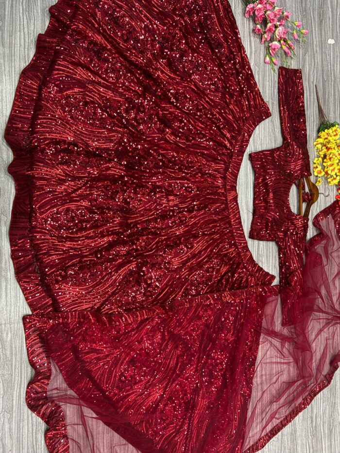 Red Embellished net lehenga choli with heavy embroidery and sequins work