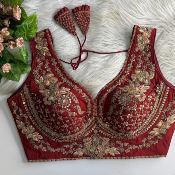 Roman silk readymade blouse with sequins and thread work