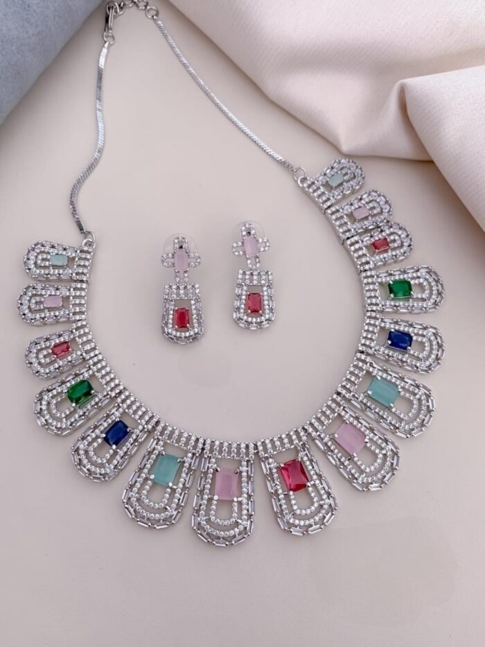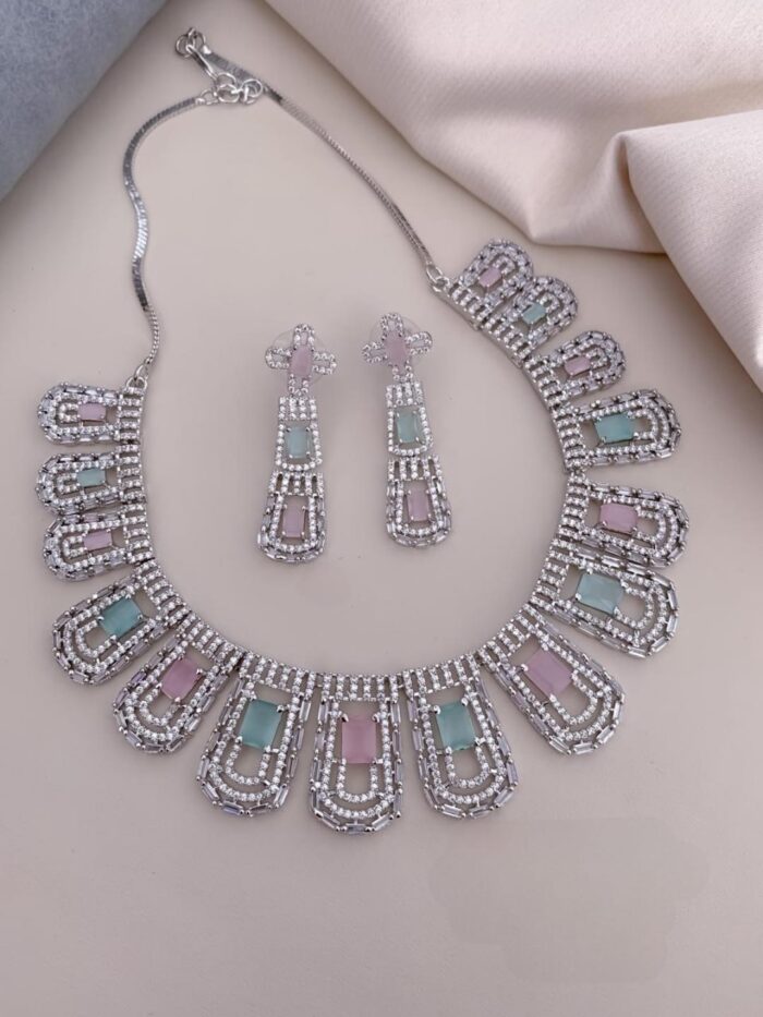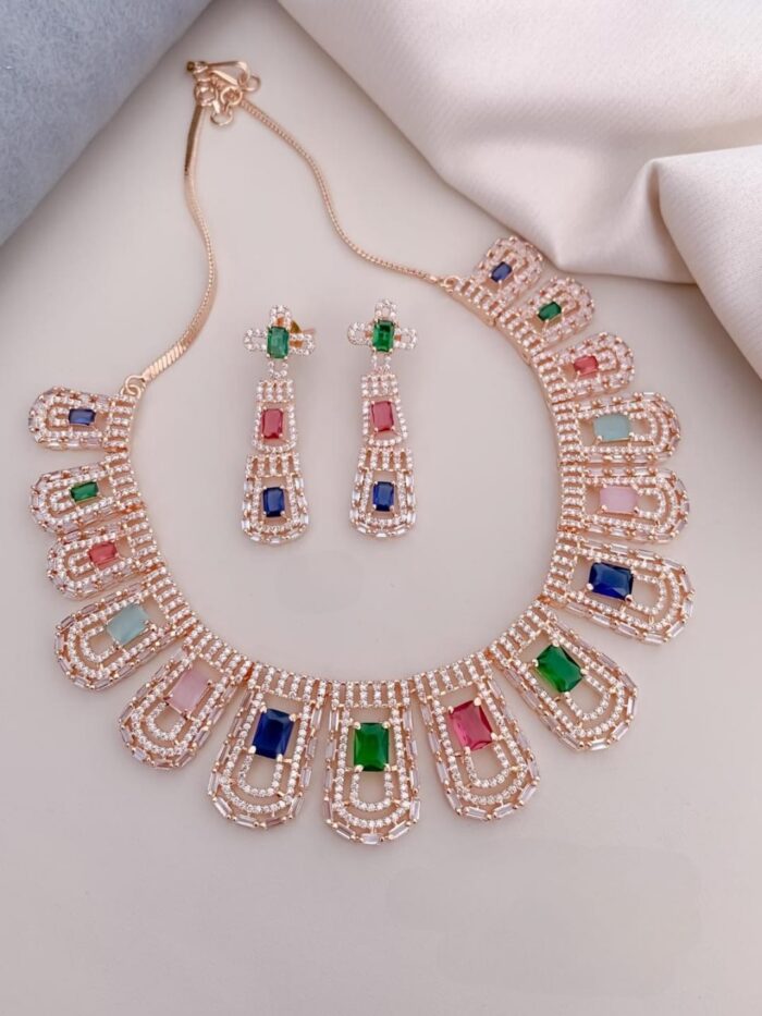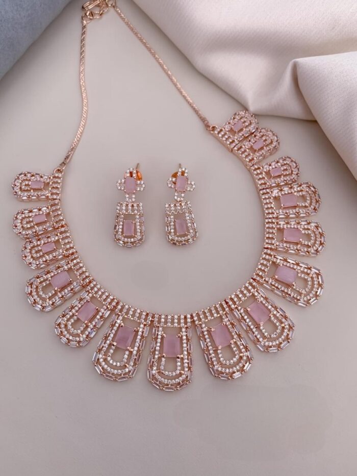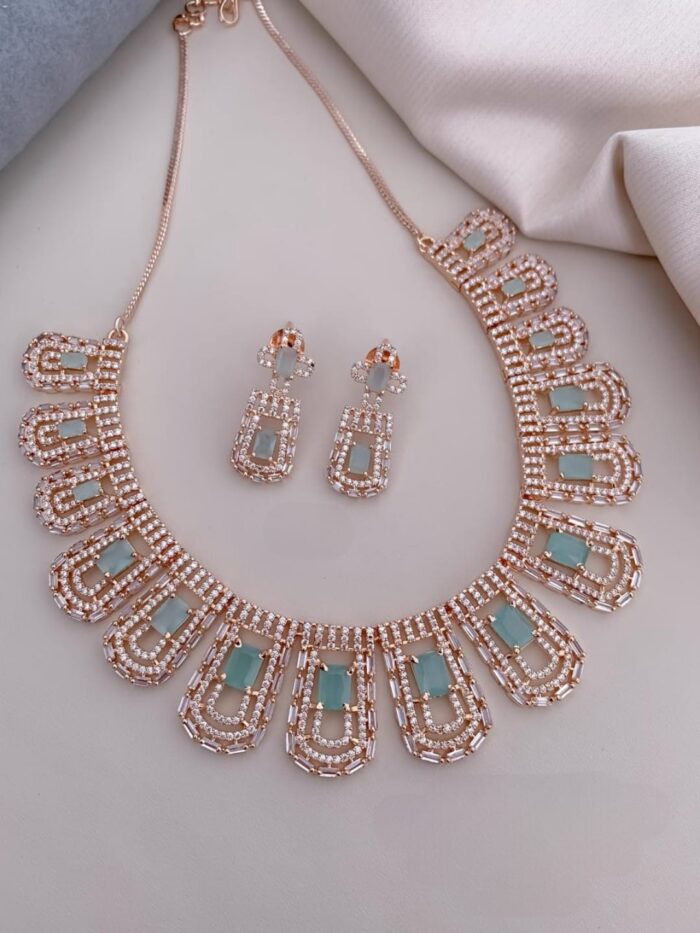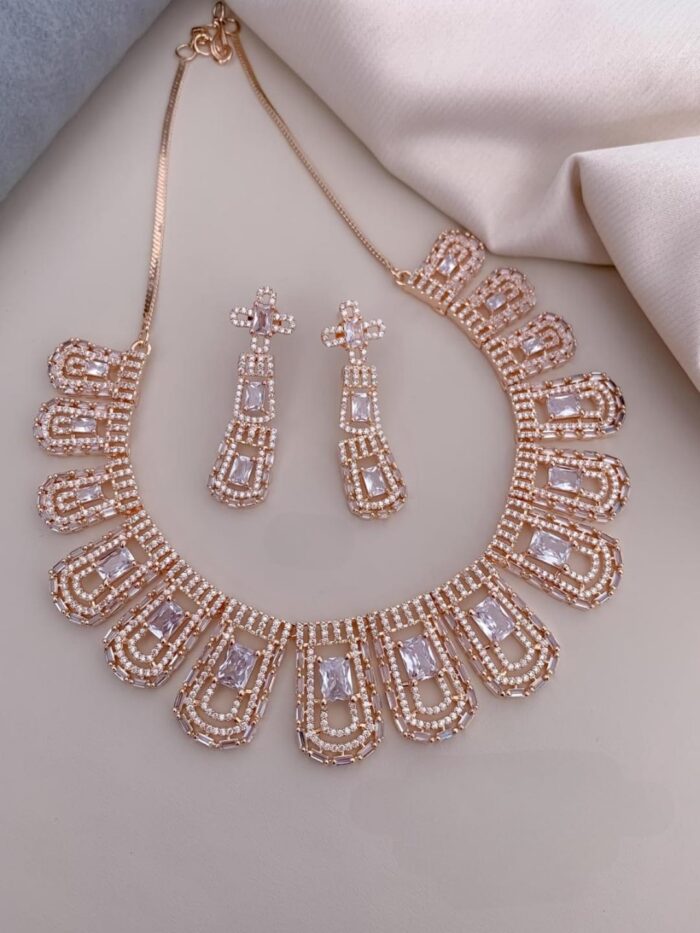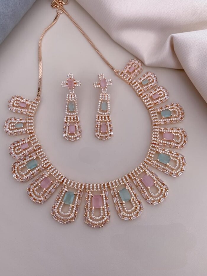 Rose Gold and Silver Based AD Necklace Sets