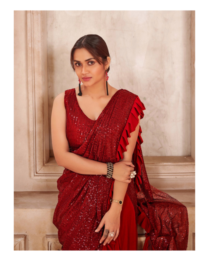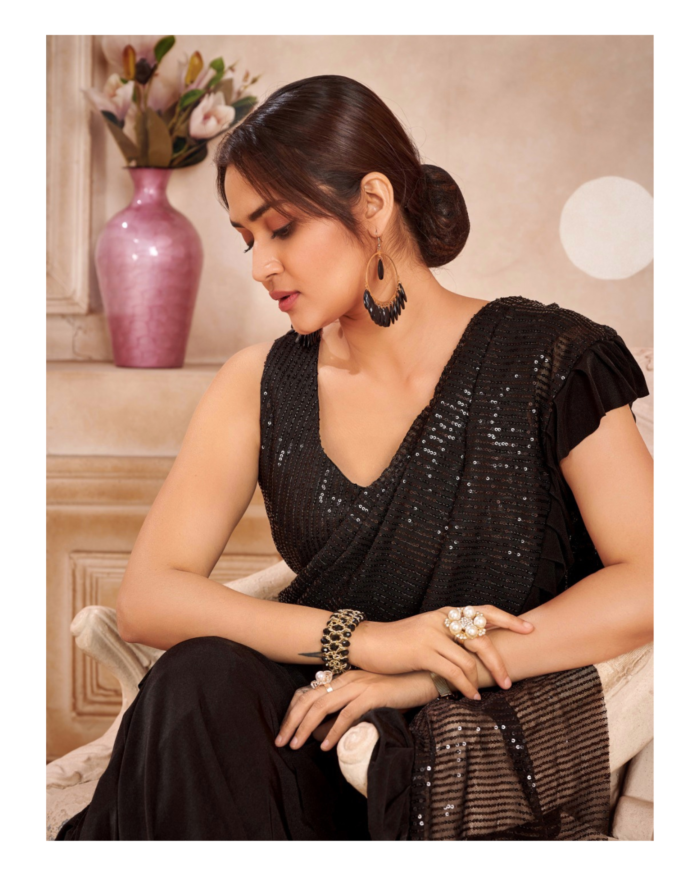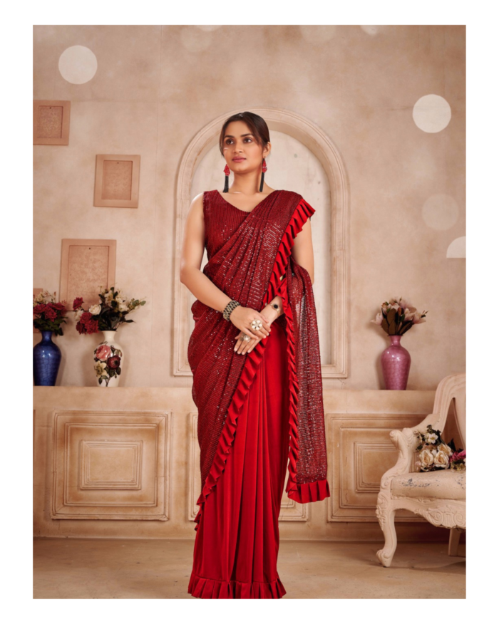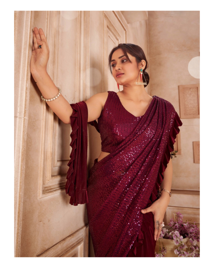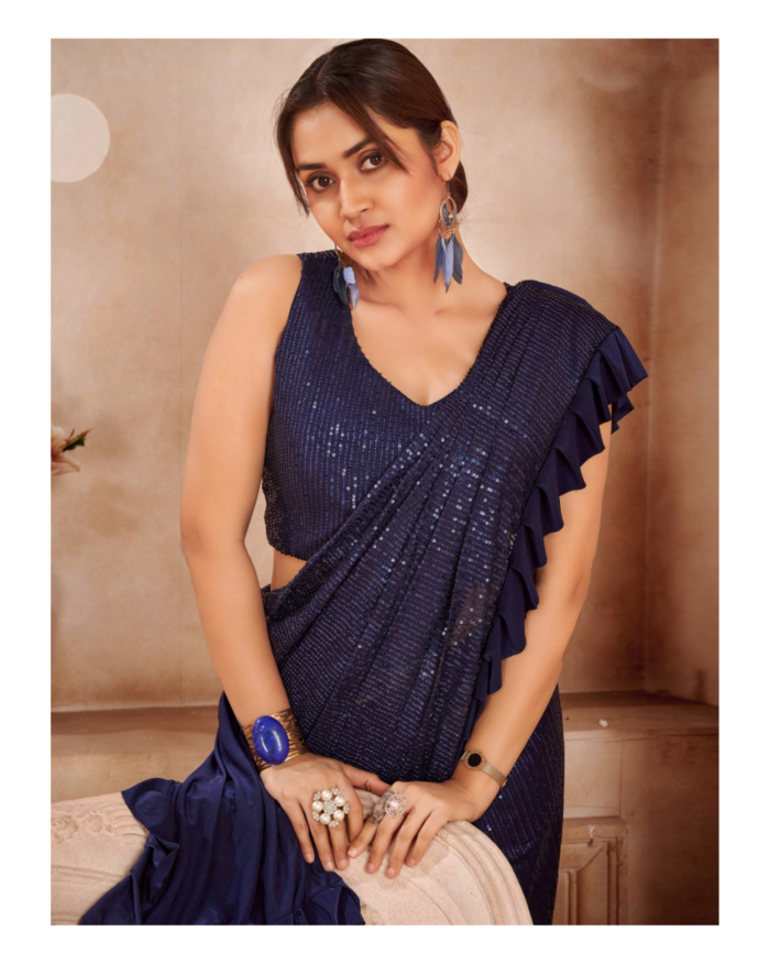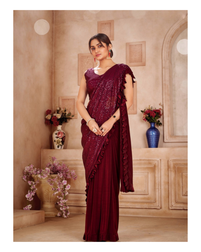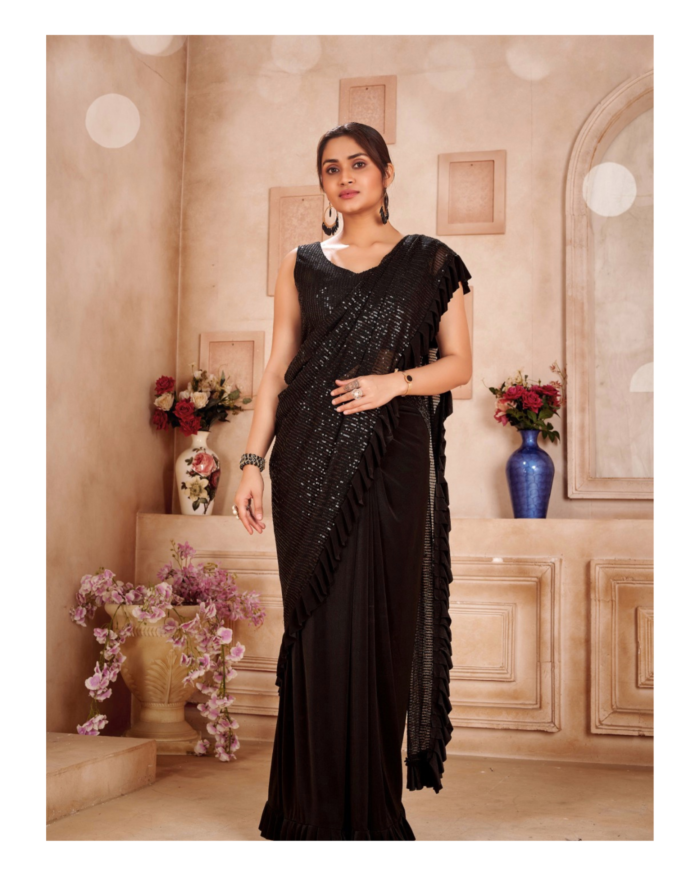 Sequins ruffled ready to wear saree
