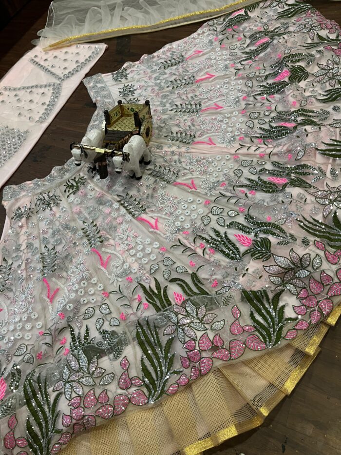 Lehenga work-Sequins Embroidery Work With Cancan & Canvas Patta