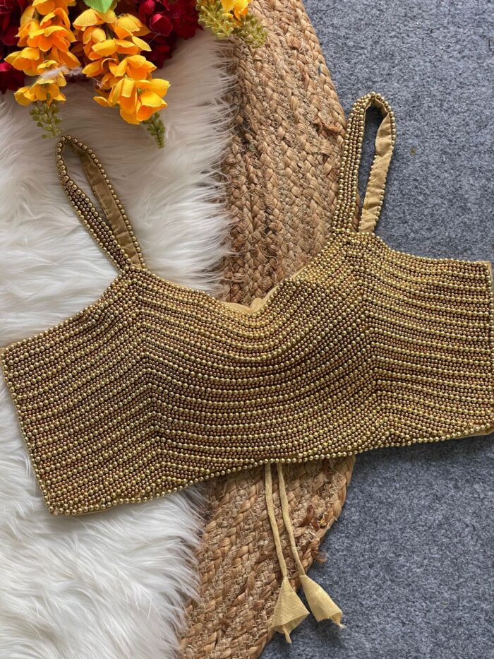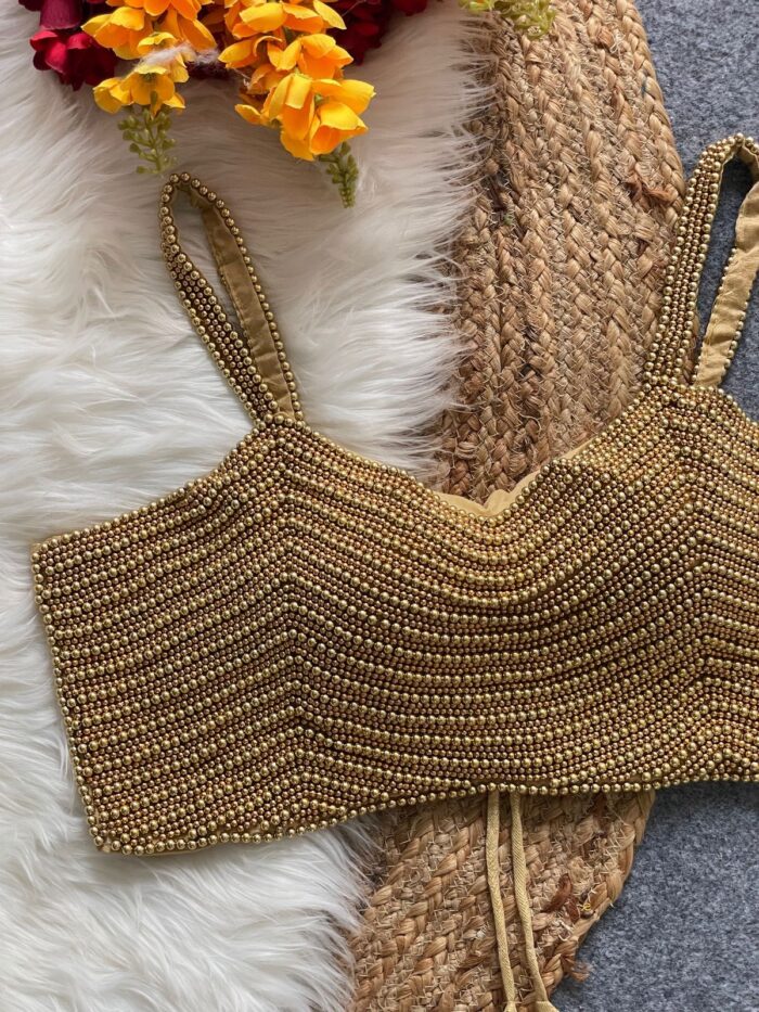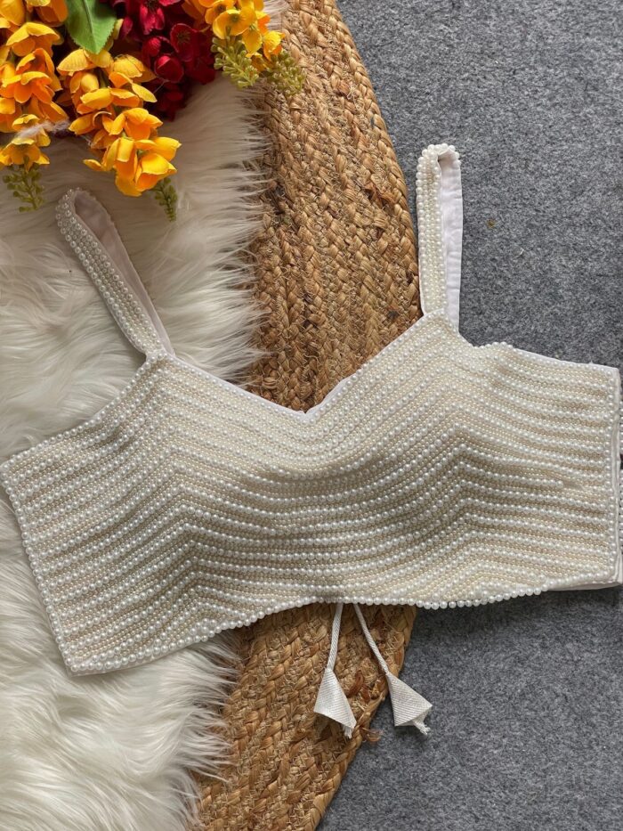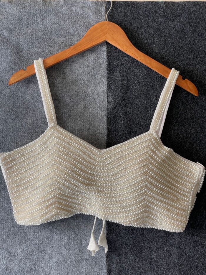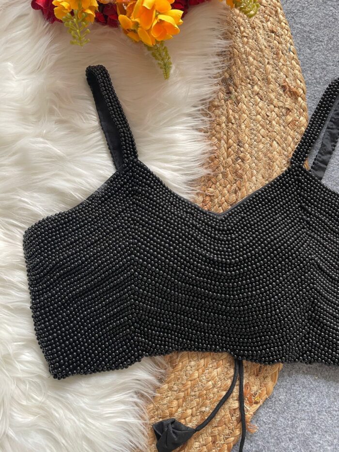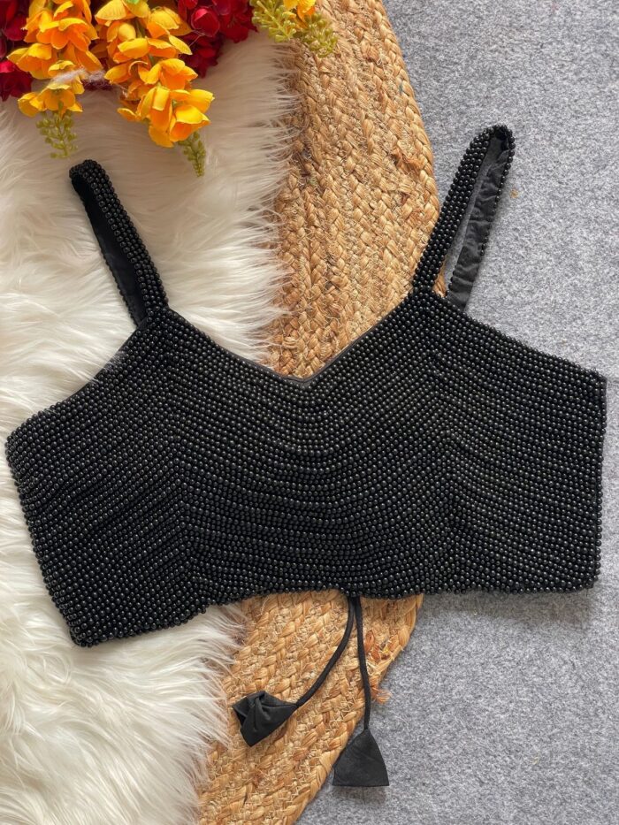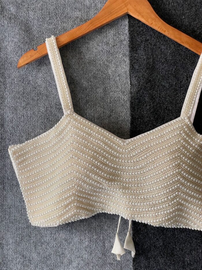 Silk handcrafted pearl spaghetti readymade blouse