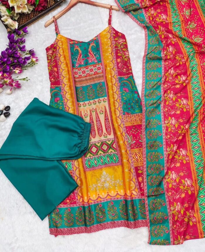 Elevate your ethnic wardrobe with this luxurious Silk Kurta and Salwar Set, perfect for festive occasions and celebrations. Crafted from premium silk fabric, the kurta features a subtle sheen and a graceful silhouette, ensuring you stand out effortlessly. The salwar is designed for comfort and style, with a relaxed fit that complements the kurta’s elegant flow. Whether you’re attending a wedding, a festival, or a formal gathering, this ensemble combines traditional craftsmanship with modern sophistication, making it a timeless addition to your collection.
