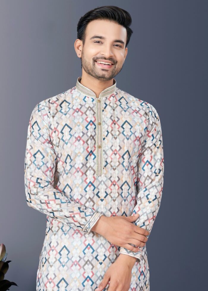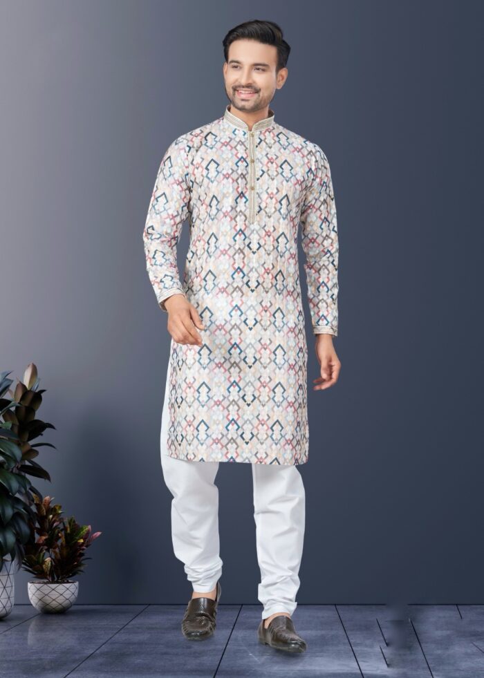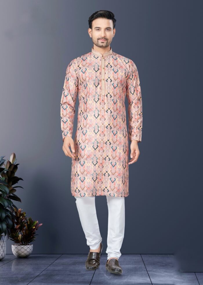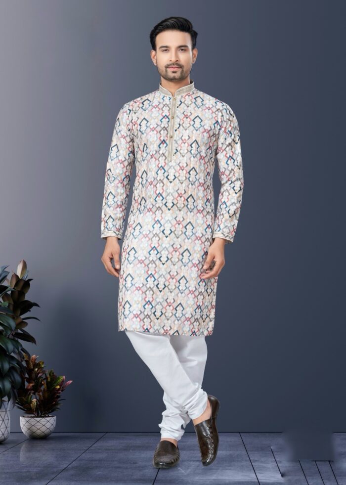 The luxurious silk fabric offers a rich sheen and smooth texture, while intricate embroidery enhances the royal appeal. With its classic mandarin collar and tailored fit, this sherwani ensures you make a bold, sophisticated statement on any special occasion. Paired with traditional churidar or trousers for a complete, regal look.