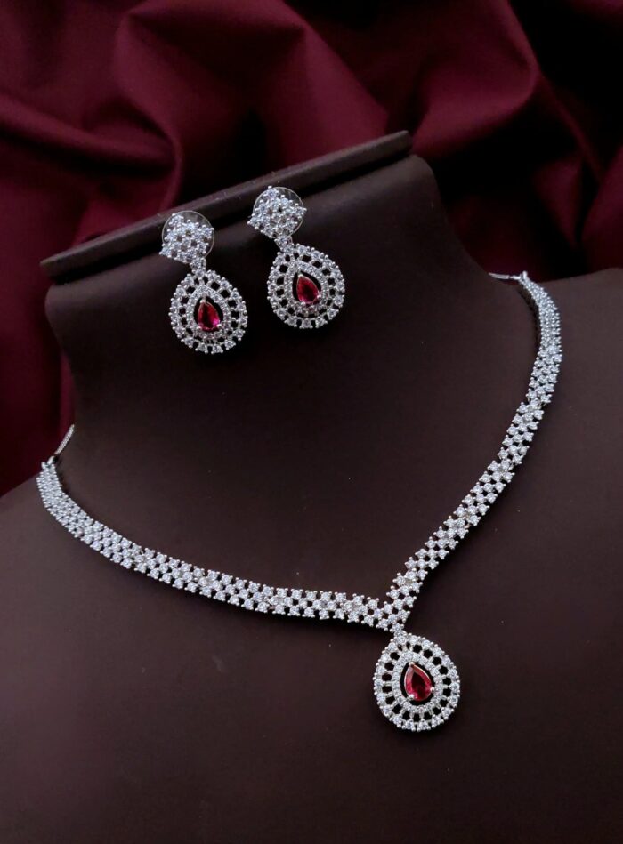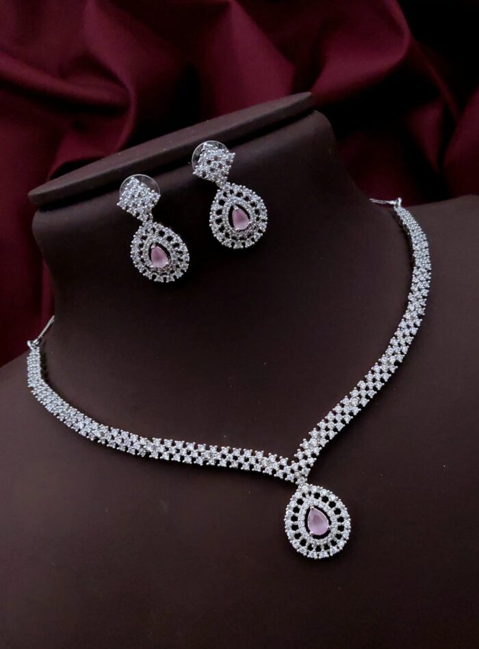Silver Based American Diamond Necklace Sets