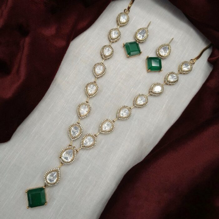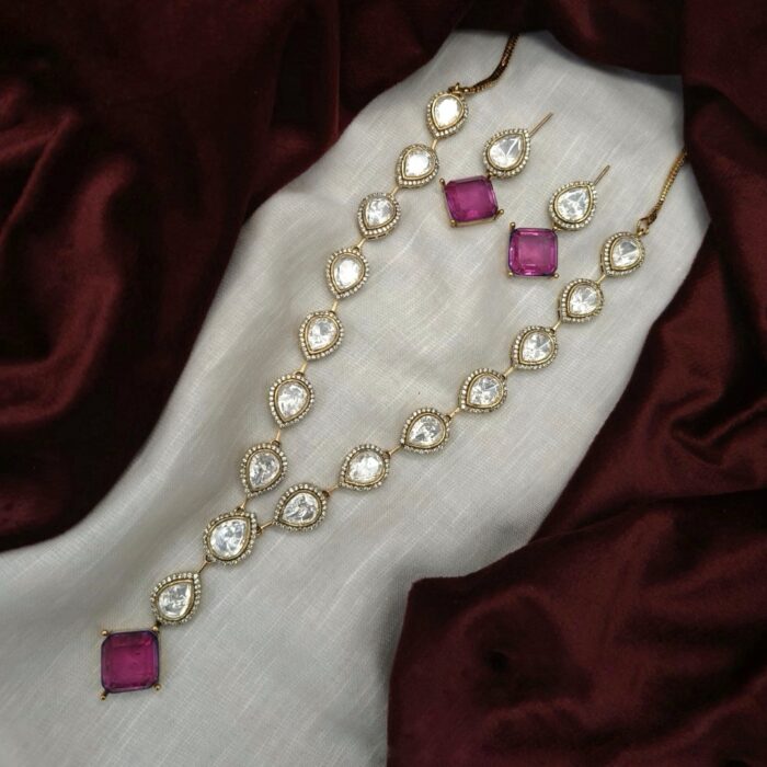 Beautiful minimalist necklace set that would compliment any outfit. The Kundan stones are of very good quality.