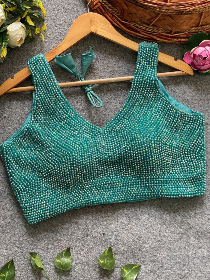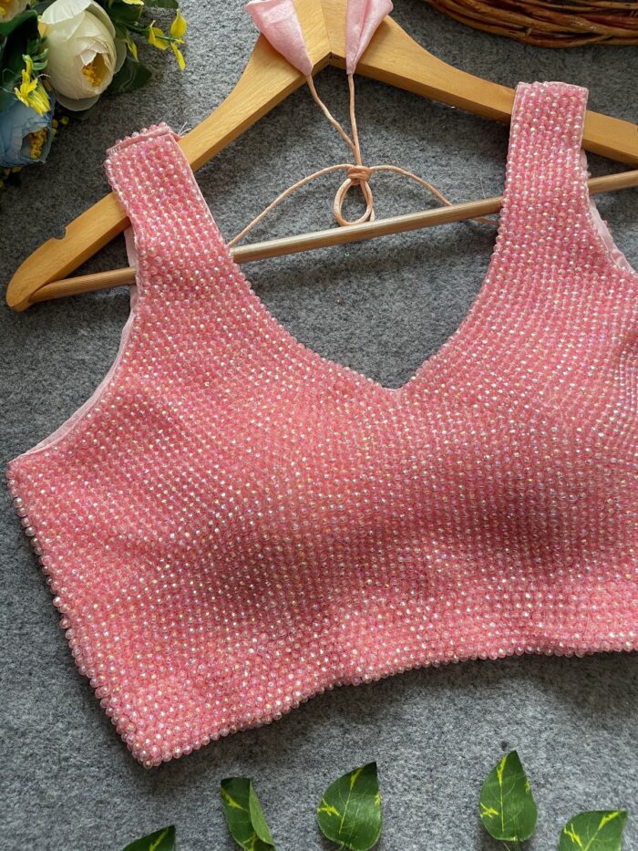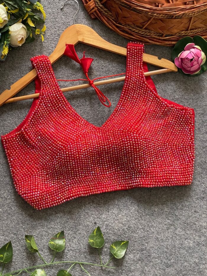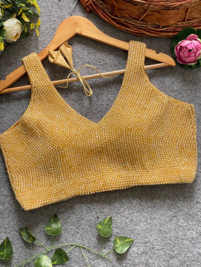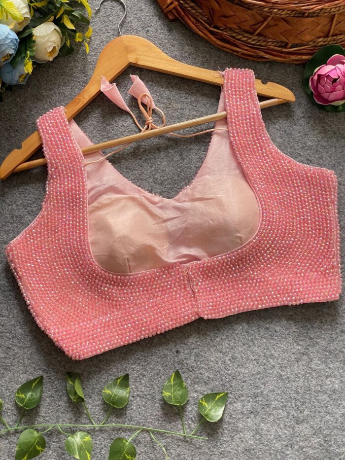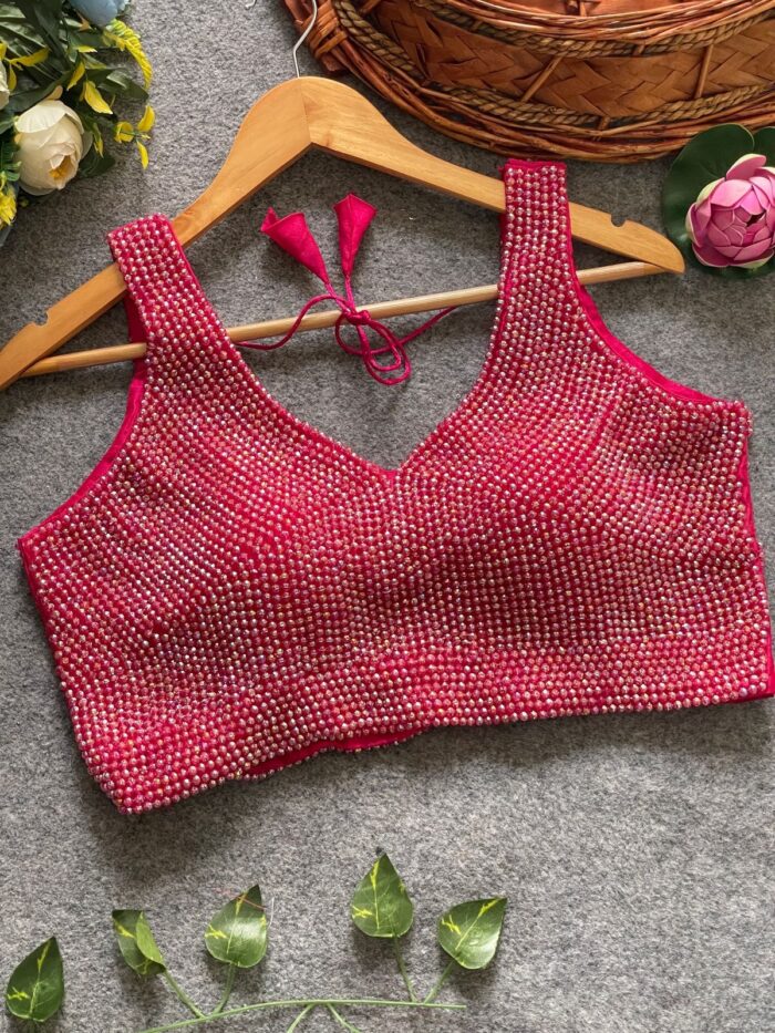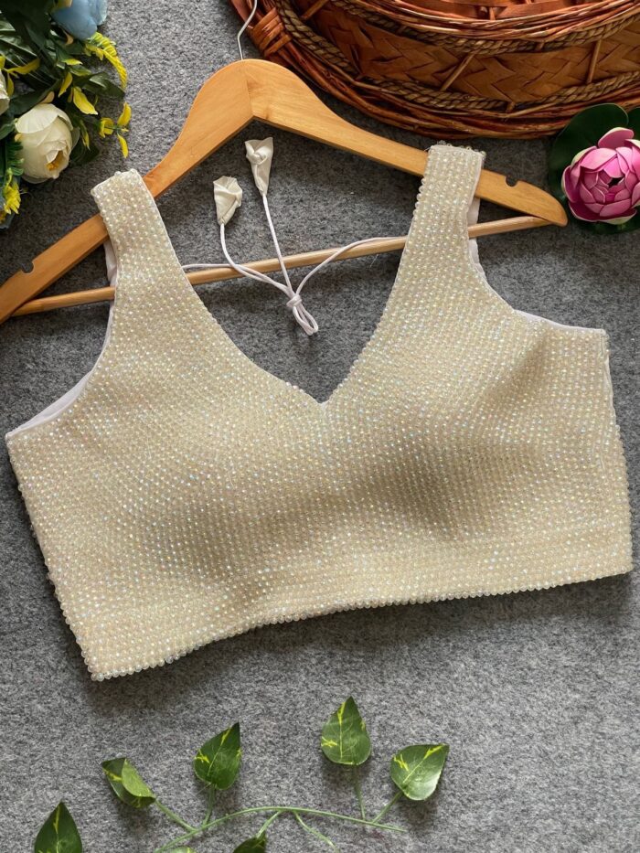 Sleeveless handcrafted pearl silk ready made blouse