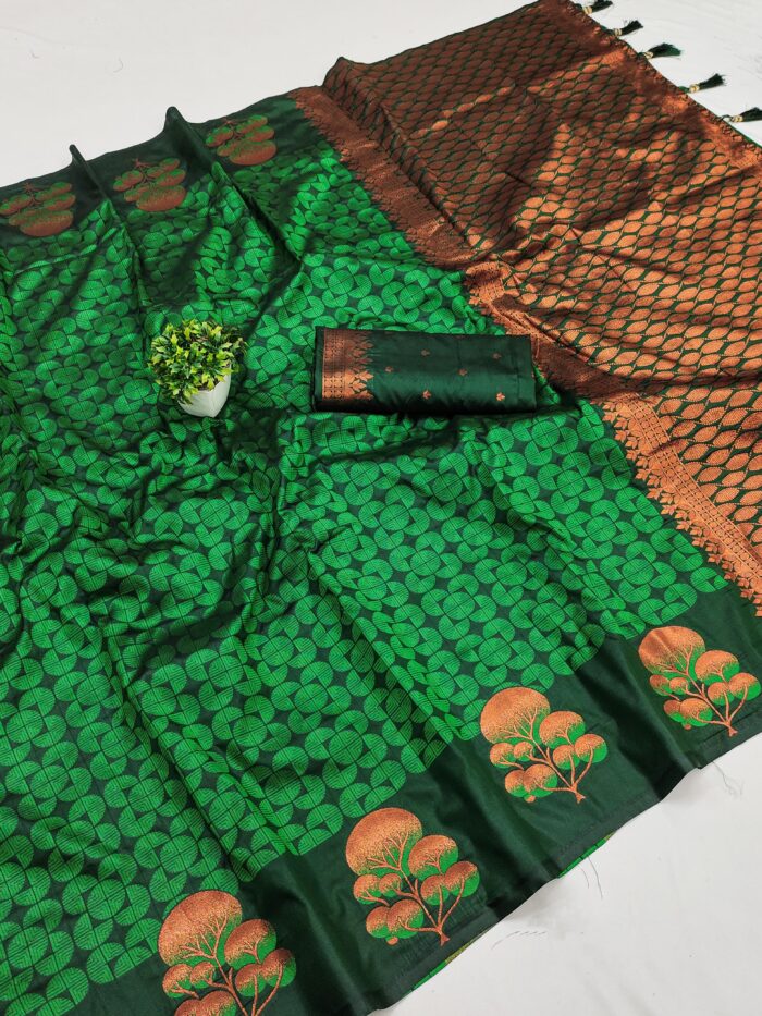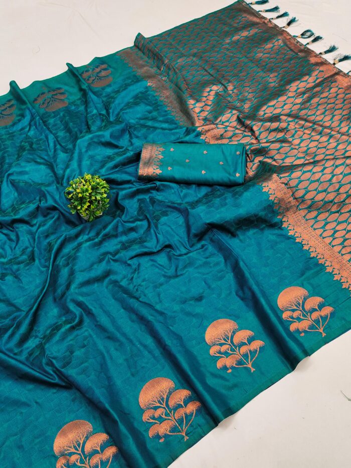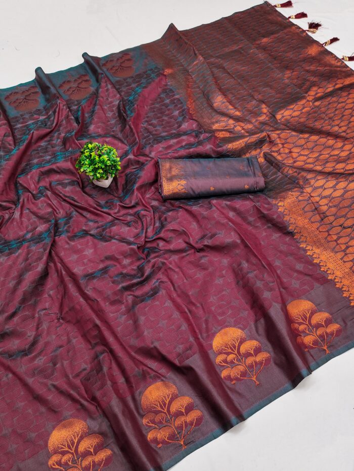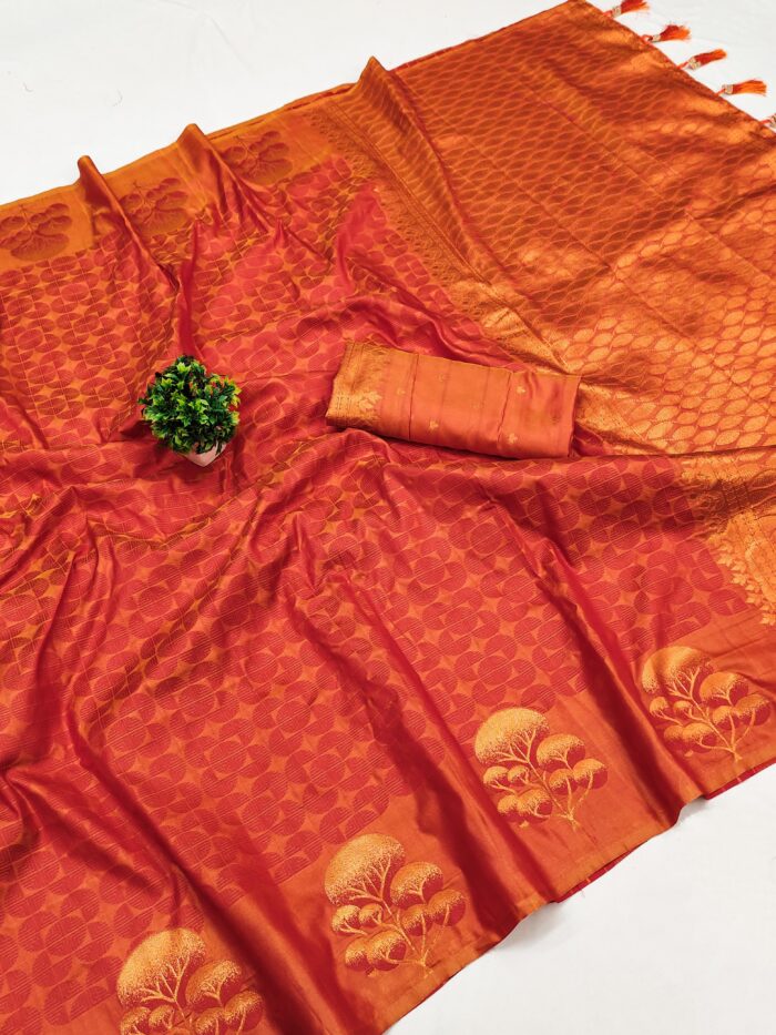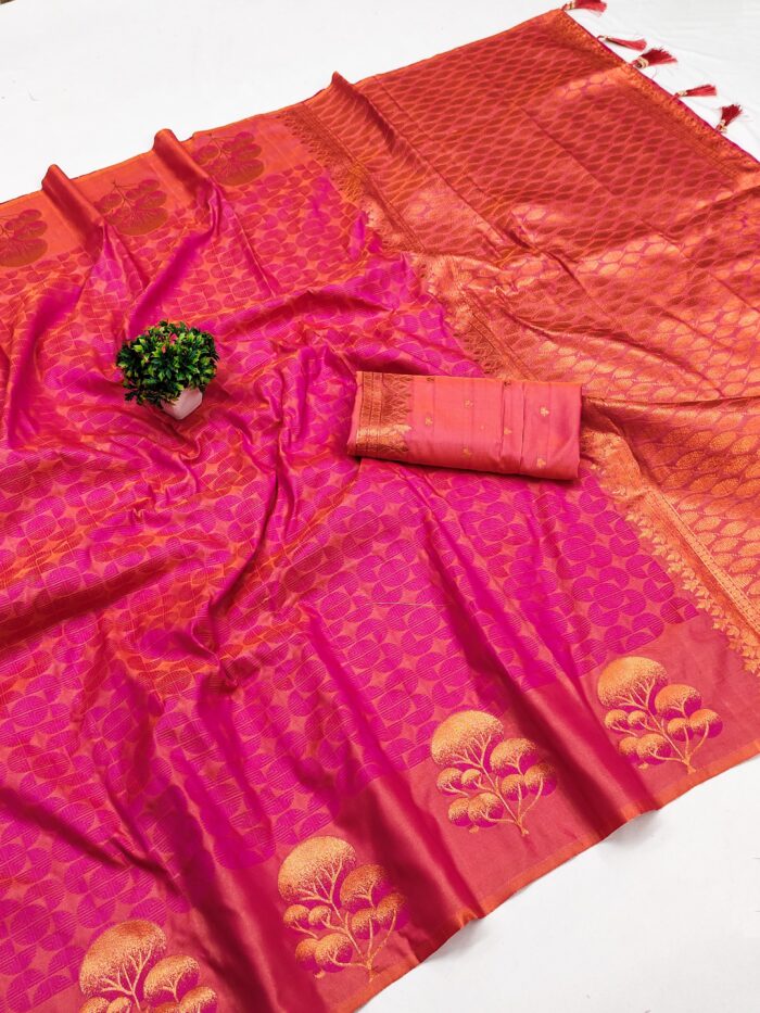 Saree :- Soft silk saree with self weaving design all over the saree & zari weawing Rich pallu with zari weawing unique border & Tessels attached at Pallu End.