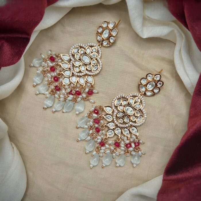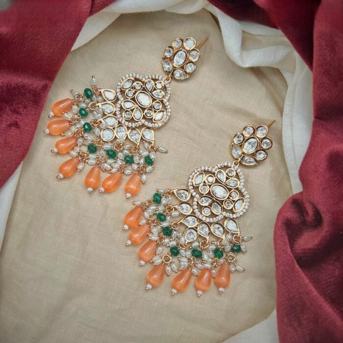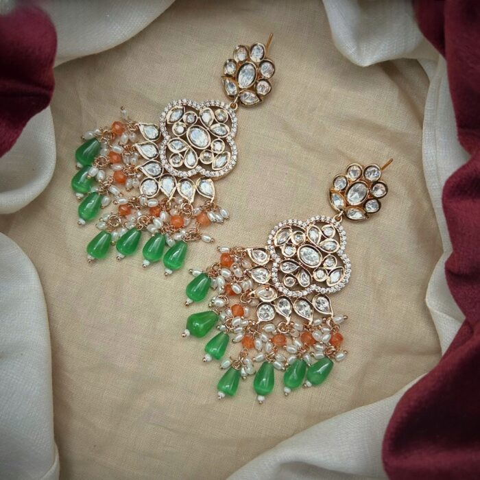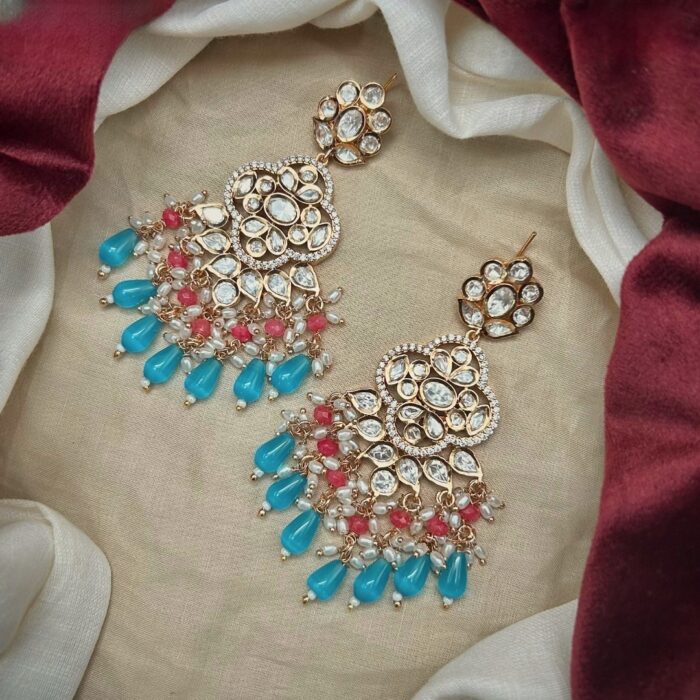 Beautiful large statement earrings with high quality Kundan stones. We can customise this for you in any colour.