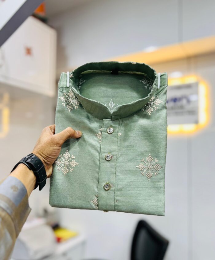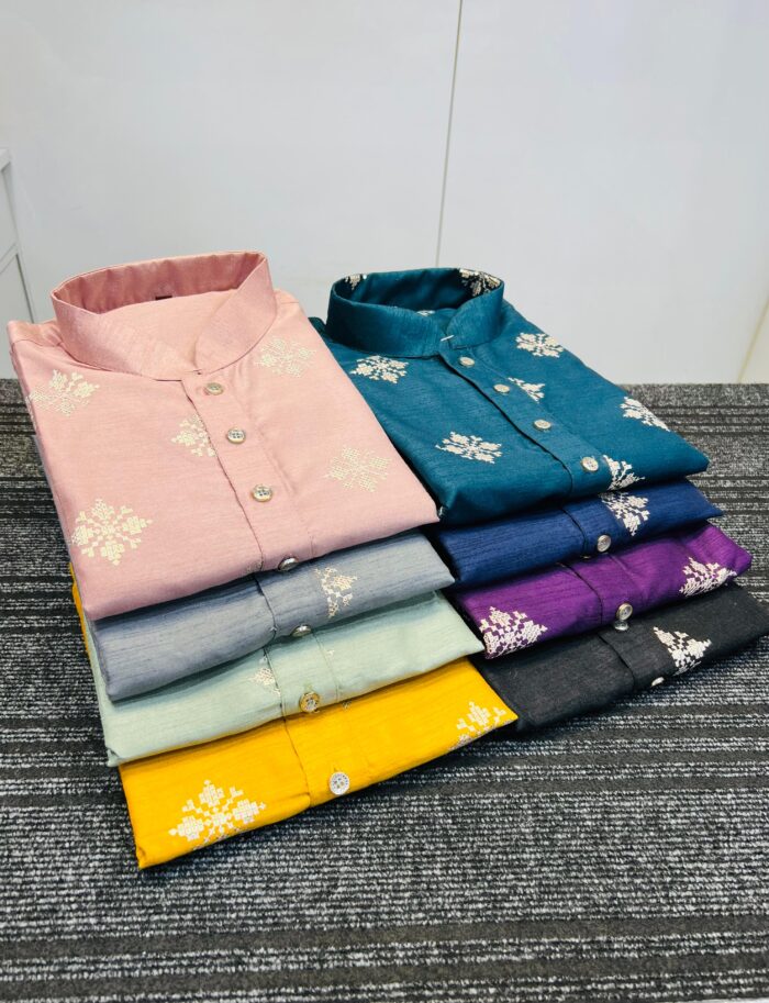 KURTA DETAIL : CROTCH STICH & MATE COPPER SEQUINS WORK WITH SOFT PARBON SILK