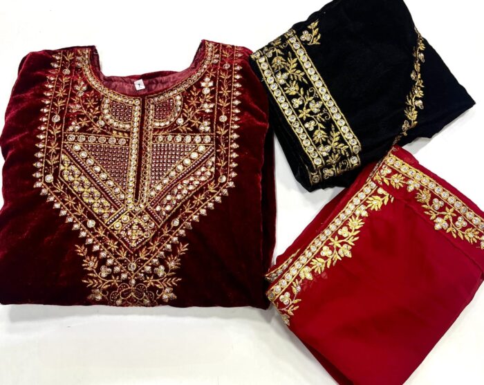 GOOD QUALITY HEAVY VELVET TOP WITH BEAUTIFUL EMBROIDERY WORK & HEAVY VELVET PANT