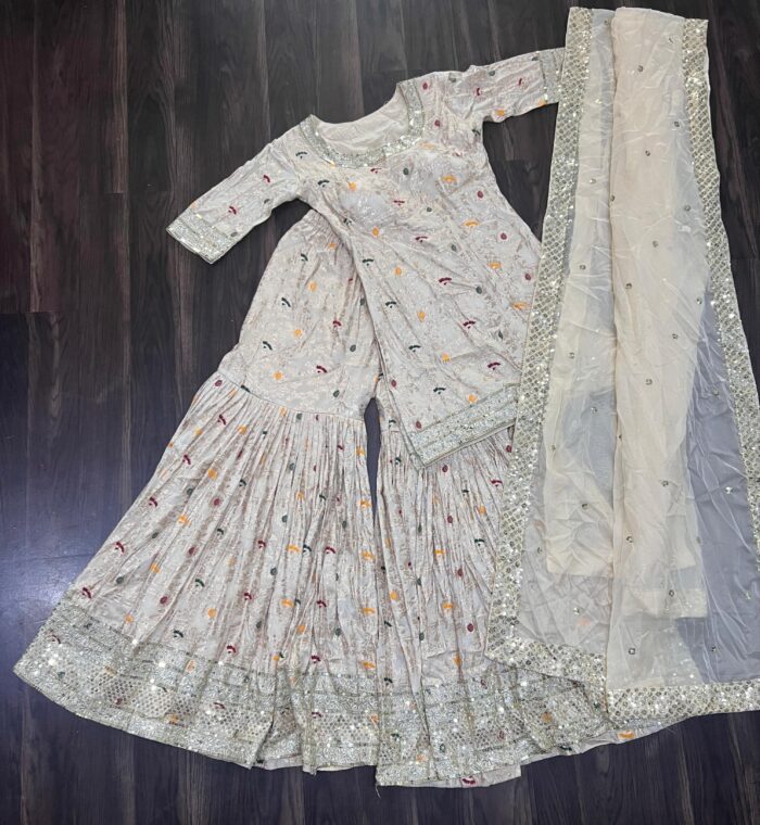 FABRICS & Work :- Viscose Jacquerd Sequins & zari Embroidered work
