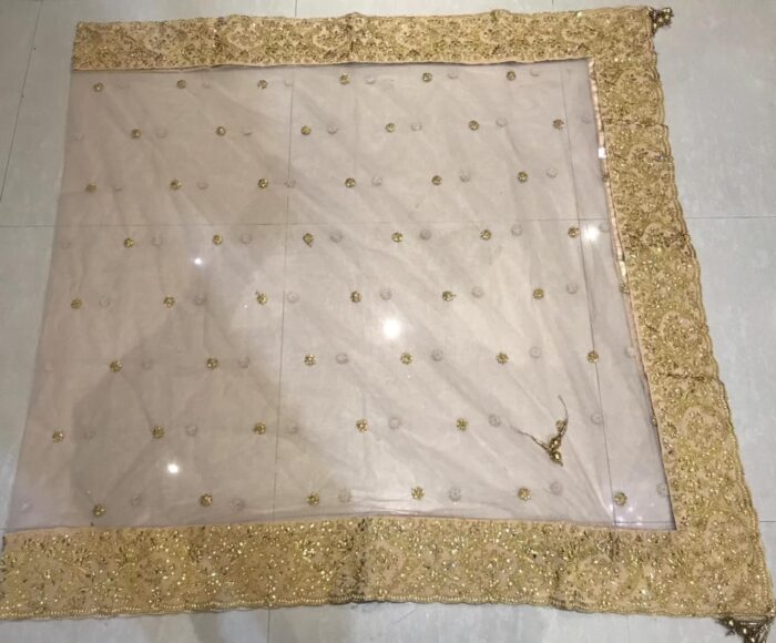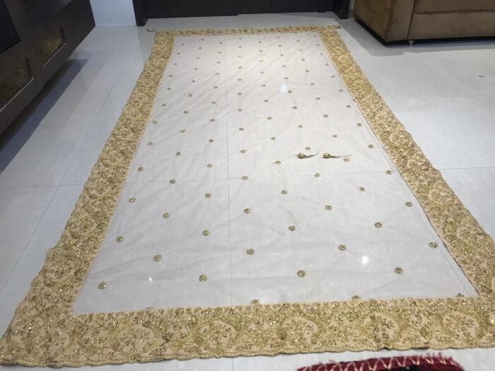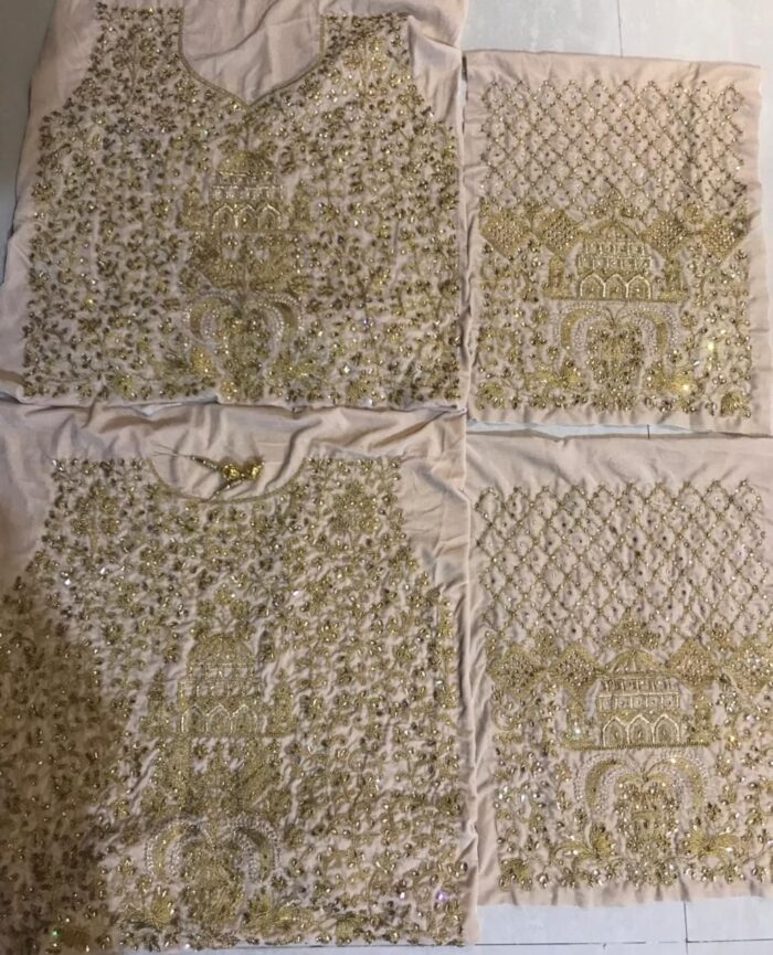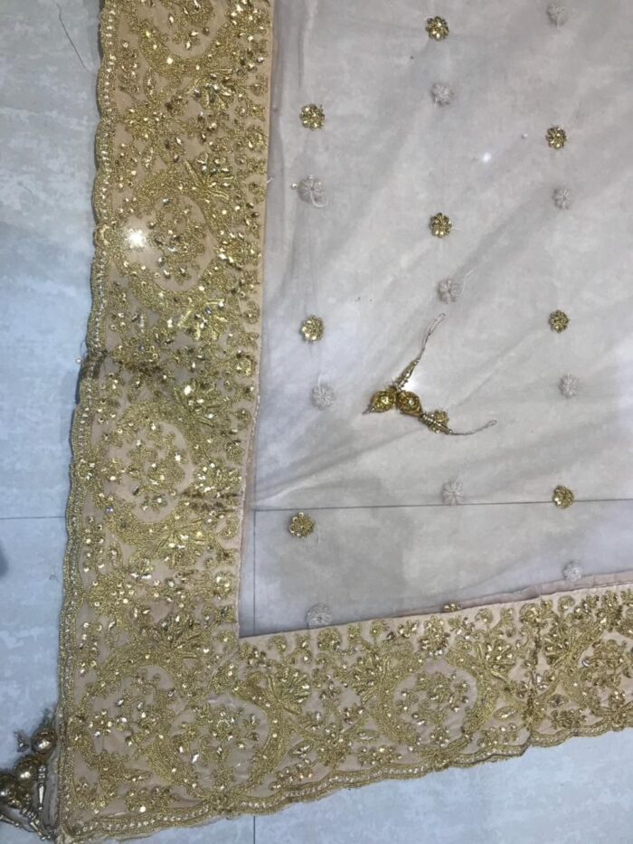 Dupatta: Soft Mono Net 2.50mtr with coding embroidery work , Velvette Lace embroidery coding work,zari work, thread work Border & HEAVY GOLDEN stone WORK & four size grand heavy RUDRAKSH JHUMKA