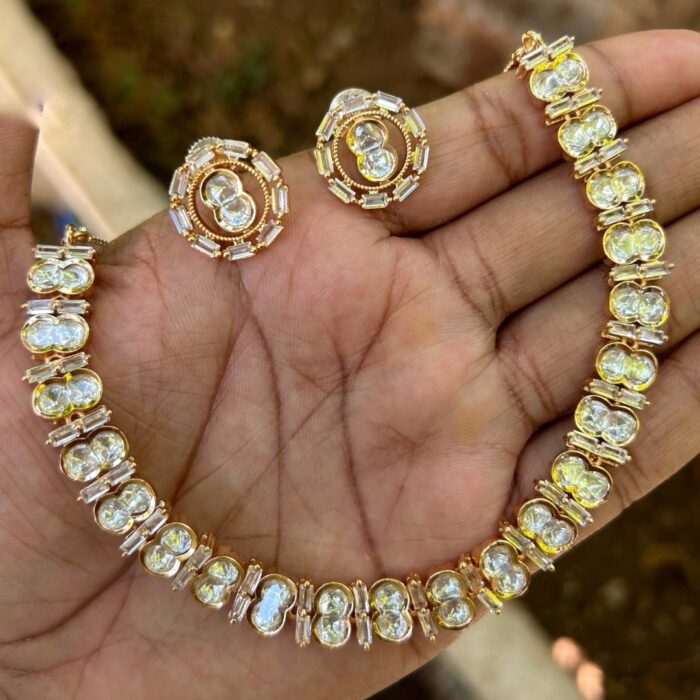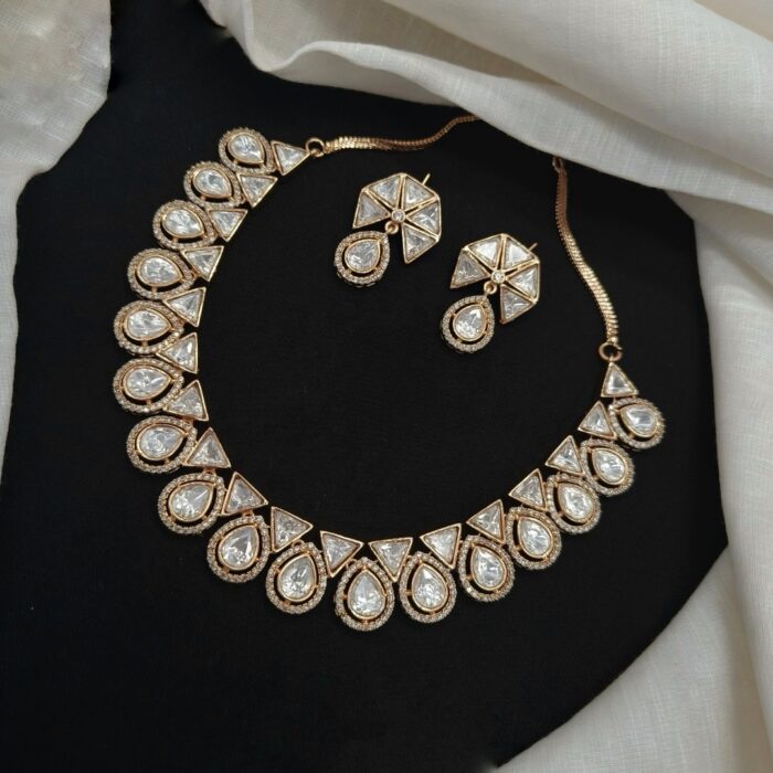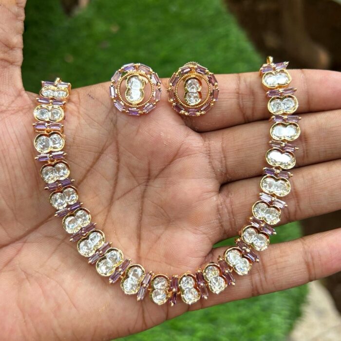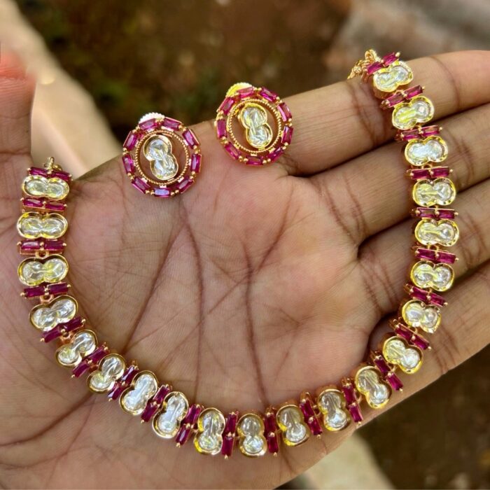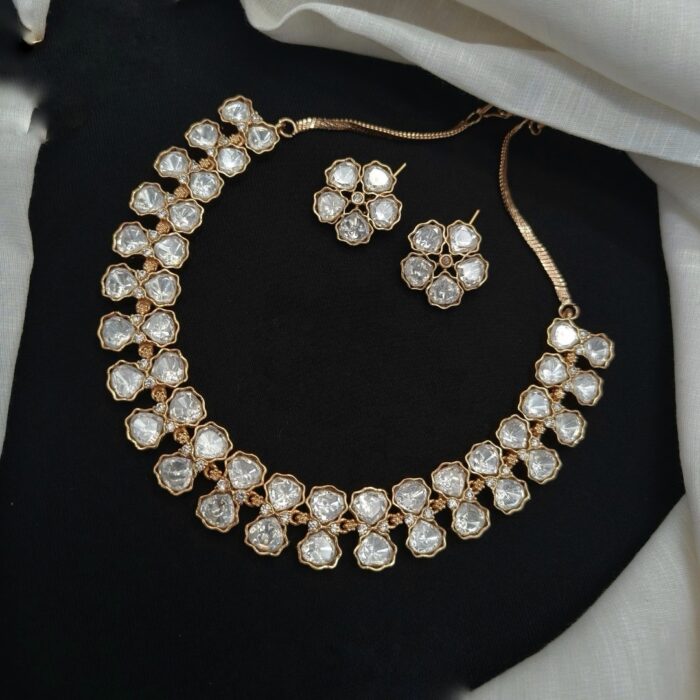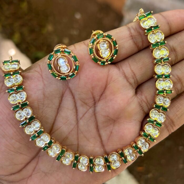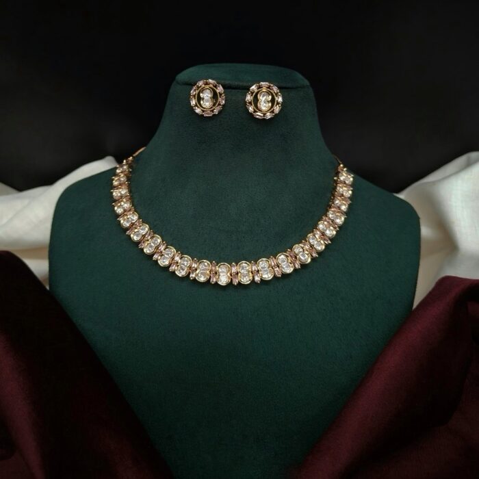 Beautiful minimalist necklace set that would compliment any outfit. The Kundan stones are of very good quality.